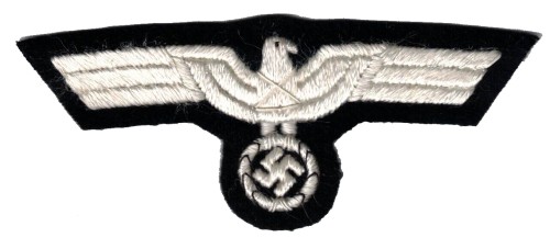 RSE47.German Army Generals breast eagle on White for White summer tunic. Overall about 4.4" x 1.75". $15.00