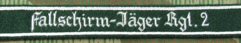 RSE159.Fallschirm-Jager Rgt 2 enlisted ranks cufftitle. Hand embroidered thread on Green. $19.95 |