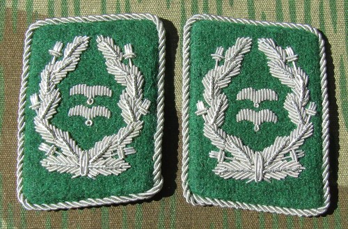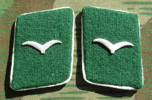 RSE612.Luftwaffe enlisted ranks collar tabs.Green cloth with White piping