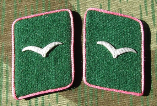 RSE614.Luftwaffe enlisted ranks collar tabs.Green cloth with Pink piping
