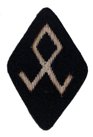 | RSE15.Waffen SS sleeve diamond for those assigned to the SS Race and Resettlement head office. , Aluminum thread on Black for officer ranks. $8.00 |