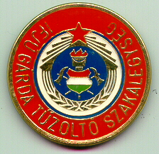 in gilt, in center red star, below gilt Hungarian inscription on dark red enamel.