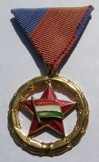 Merit medal 1st class .Hungarian flag on red star in gold wreath.With ribbon. $35.00 |