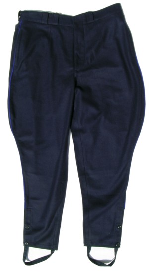 officer breeches with light blue piping down side seam.