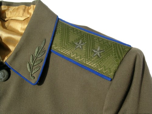 embroidery around cuffs and gold embroidered generals collar insignia,