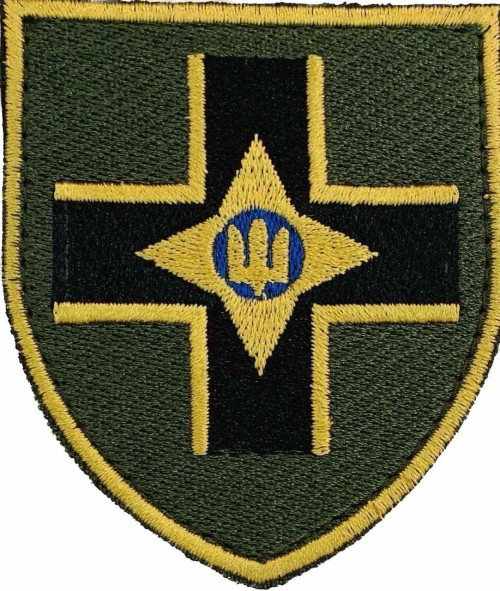 UKW8.Sleeve patch of Armed Forces of Ukraine. Medical Service. Brown Trident on Camouflage. Velcro backing. $12.95