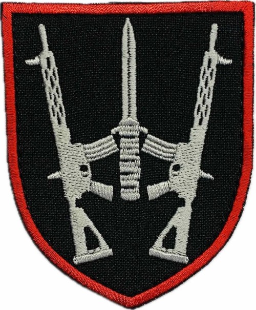 UKW159.Ukrainian Air Force Anti-Aircraft Missile Forces sleeve patch. Red Trident on Dark Blue with Blue border. $9.95