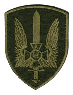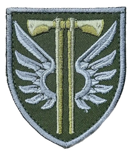 UKW50.Ukrainian sleeve patch for the 81st Separate Airmobile Brigade. Subdued. Based in the cities of Kostiantynivka, Druzhkivka, Kramatorsk and Poltava - the vast majority in the area immediately adjacent to the combat zone in the Donetsk region. The brigade was formed after the beginning of Russian invasion in the fall of 2014. The personnel of the brigade received their baptism of fire in late 2014 early 2015, during the defense of the Donetsk airport and adjacent areas. $9.95