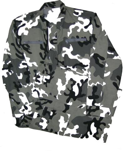 CH30.Chinese Army Type 21 Starry Sky Camouflage. Jacket is zip up with velcro closure, 2 upper side zip pockets, 2 lower patch pockets , 2 sleeve pockets. Pants have 2 front pockets, 2 back pockets, 2 side pockets. $159.95