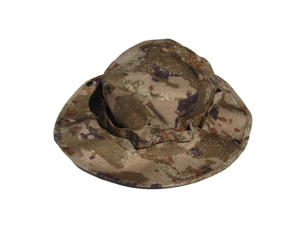 CH36BOONIE.Chinese Type 21 Armed Police Camouflage Boonie Hats. Hat has 4 metal vent holes, side snaps, drawstring on back. Available in sizes 58,59,60. $29.95