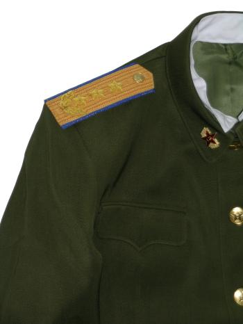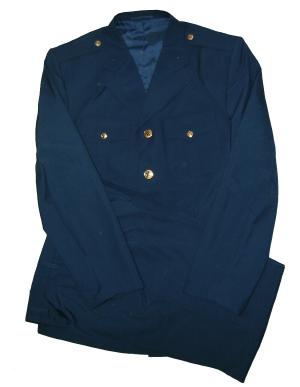 uniform. Includes jacket,pants,hat. Nice heavy fabric, well marked. Have hat sizes 58,59. Shoulder boards have 3 embroidered gold stars and wreath. Size of the jacket is 44-46, pants 38" waist. $475.00 Beautiful uniform. Also available in Jacket size about 42 ", waist size 36" |