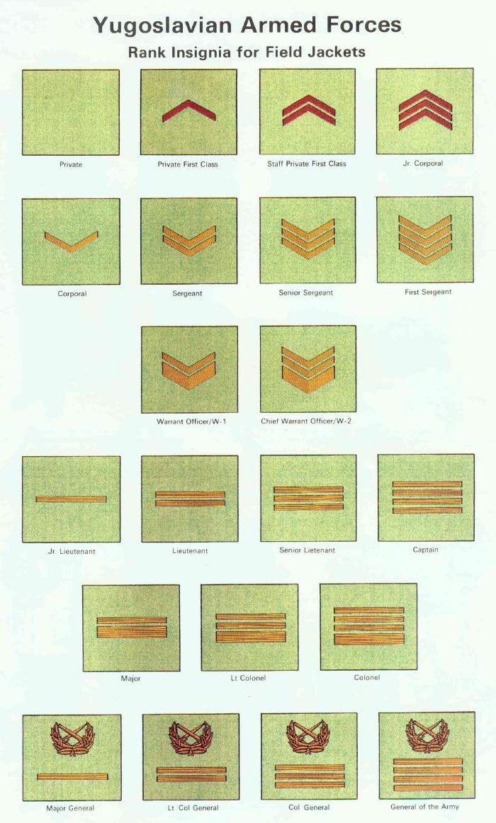 YUGOSLAV PEOPLES ARMY INSIGNIA AND RANK CHARTS