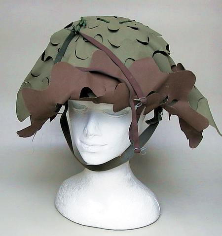 | SKH2.Bosnian Muslim Kevlar helmet with leafy cover and muslim band. SOLD |