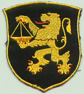YU1041.A POLICE SLEEVE PATCH in form of a shield. Black and golden