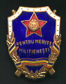 inscription "PENTRU MERITE MILITIENESI". At lower part of the badge is