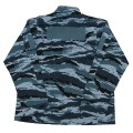 R96.Russian Blue tiger pattern camouflage winter sets with removable winter lining.Lined jacket has 2 upper chest pockets,2 lower pockets, 2 sleeve pockets,1 internal pocket,internal holster.Jacket also has detachable camouflage hood.Button in removable lining has an attached fur collar and 1 internal pocket Pants are coverall type with suspenders. Available in sizes 54/56-4,58/60-4. $275.00 Jackets only available in size 54/56-4. $199.95 |