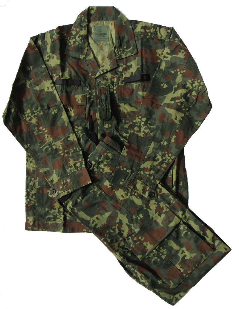 KAZAK3. Kazakstan Army camouflage sets. Shirt has 2 upper pockets, 2 sleeve pockets, Kazakstan Army sleeve patch. Pants have 2 front pockets, 2 cargo pockets. Available in sizes 50-3, 50-4, 50-5, 50-6, 52-2. $119.95 |